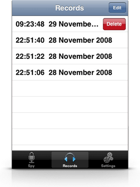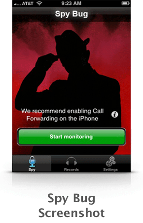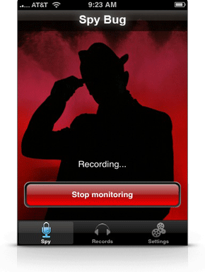 A spy listening program for your iPhone. Ever wanted to pretend to be a spy? Now turn your iPhone into a listening device. Use it to record conversations. Also useful for recording lectures. Once you start monitoring, the application only records when it detects noise. So no need to listen to long recordings of nothing. Place in a room and let it record what goes on while you are away.